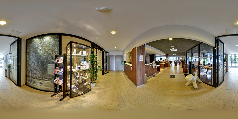 3. Navigation interactive : Les panoramas sont reliés entre eux pour permettre la navigation d'un espace à l'autre, comme si vous marchiez réellement dans les lieux.