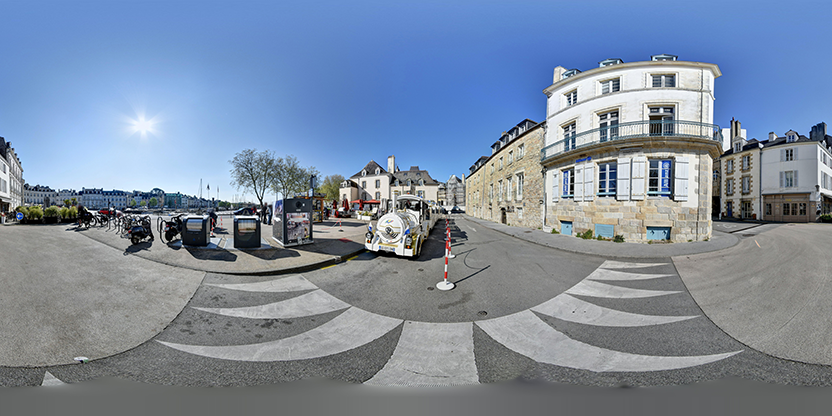 2. Assemblage et traitement : Les multiples photos sont assemblées pour créer des panoramas sphériques haute résolution, puis optimisées pour un affichage fluide sur tous les supports.
