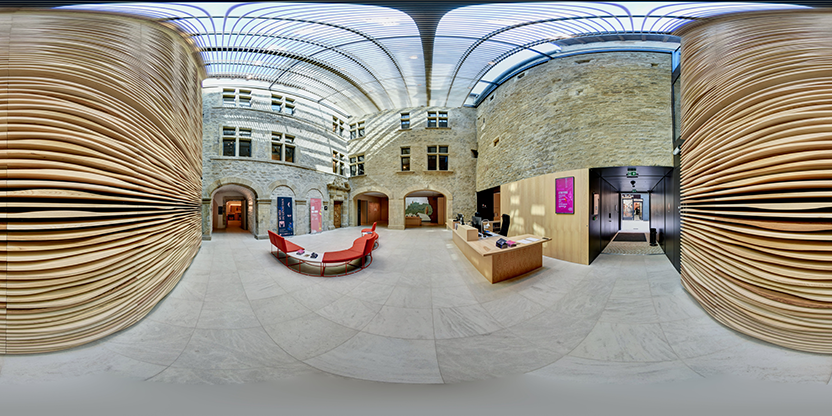 3. Navigation interactive : Les panoramas sont reliés entre eux pour permettre la navigation d'un espace à l'autre, comme si vous marchiez réellement dans les lieux.
