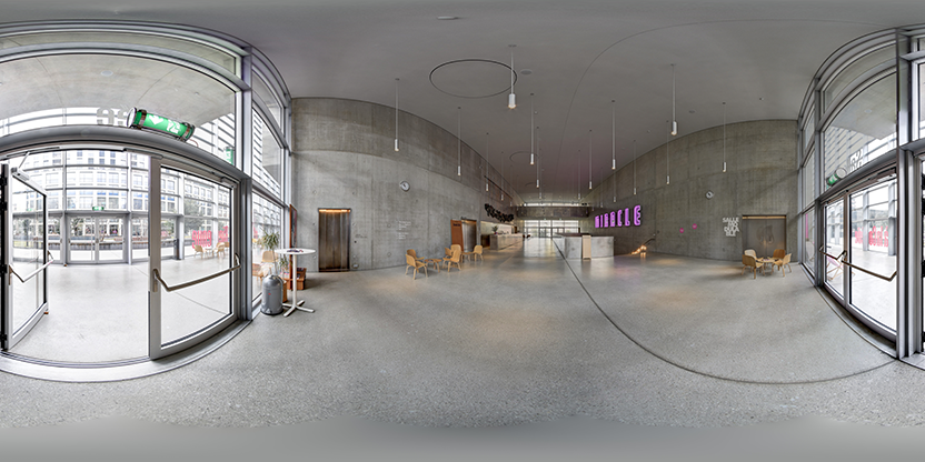 3. Navigation interactive : Les panoramas sont reliés entre eux pour permettre la navigation d'un espace à l'autre, comme si vous marchiez réellement dans les lieux.