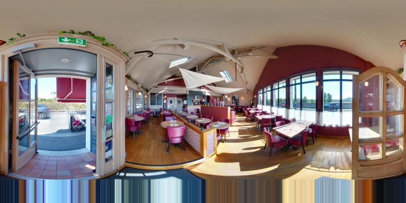 3. Navigation interactive : Les panoramas sont reliés entre eux pour permettre la navigation d'un espace à l'autre, comme si vous marchiez réellement dans les lieux.