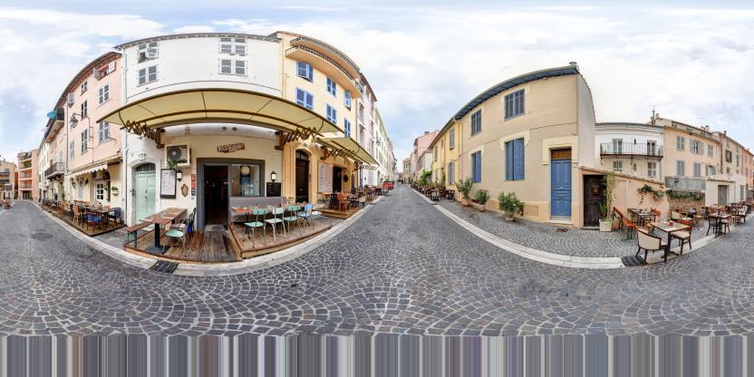 2. Assemblage et traitement : Les multiples photos sont assemblées pour créer des panoramas sphériques haute résolution, puis optimisées pour un affichage fluide sur tous les supports.