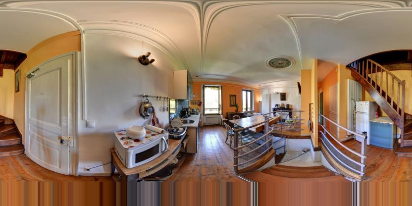 3. Navigation interactive : Les panoramas sont reliés entre eux pour permettre la navigation d'un espace à l'autre, comme si vous marchiez réellement dans les lieux.