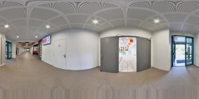 3. Navigation interactive : Les panoramas sont reliés entre eux pour permettre la navigation d'un espace à l'autre, comme si vous marchiez réellement dans les lieux.