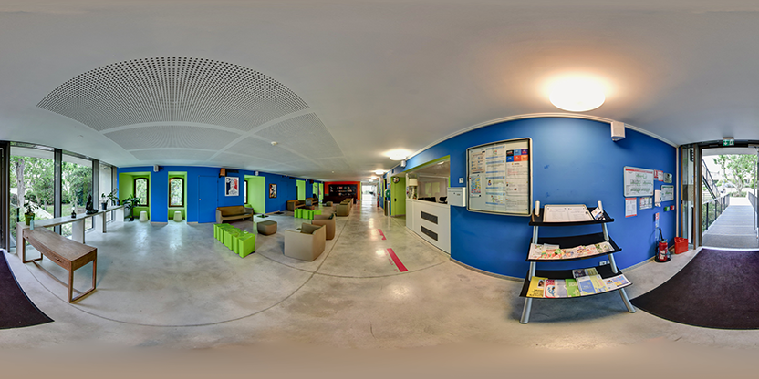 3. Navigation interactive : Les panoramas sont reliés entre eux pour permettre la navigation d'un espace à l'autre, comme si vous marchiez réellement dans les lieux.
