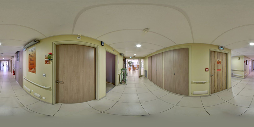 3. Navigation interactive : Les panoramas sont reliés entre eux pour permettre la navigation d'un espace à l'autre, comme si vous marchiez réellement dans les lieux.