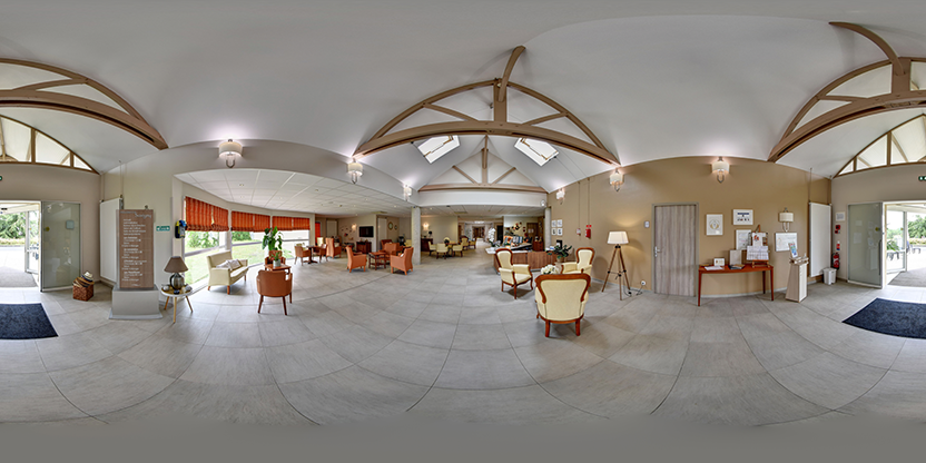 3. Navigation interactive : Les panoramas sont reliés entre eux pour permettre la navigation d'un espace à l'autre, comme si vous marchiez réellement dans les lieux.