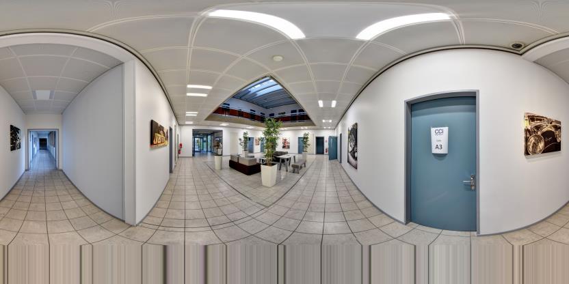 3. Navigation interactive : Les panoramas sont reliés entre eux pour permettre la navigation d'un espace à l'autre, comme si vous marchiez réellement dans les lieux.