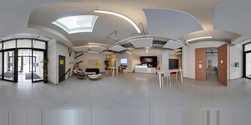 3. Navigation interactive : Les panoramas sont reliés entre eux pour permettre la navigation d'un espace à l'autre, comme si vous marchiez réellement dans les lieux.