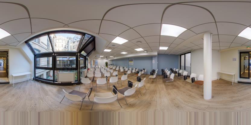 3. Navigation interactive : Les panoramas sont reliés entre eux pour permettre la navigation d'un espace à l'autre, comme si vous marchiez réellement dans les lieux.