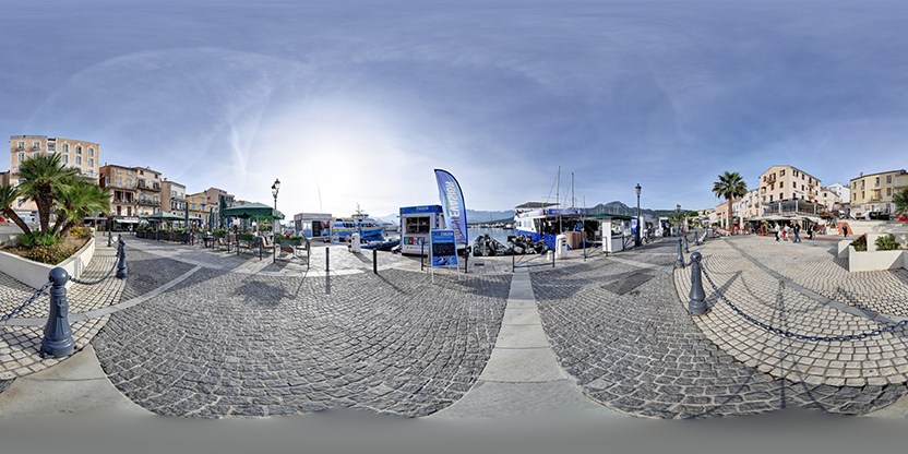 2. Assemblage et traitement : Les multiples photos sont assemblées pour créer des panoramas sphériques haute résolution, puis optimisées pour un affichage fluide sur tous les supports.