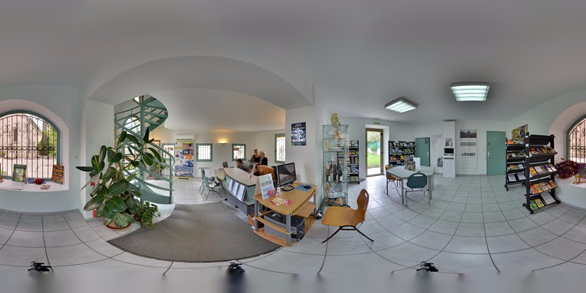 3. Navigation interactive : Les panoramas sont reliés entre eux pour permettre la navigation d'un espace à l'autre, comme si vous marchiez réellement dans les lieux.