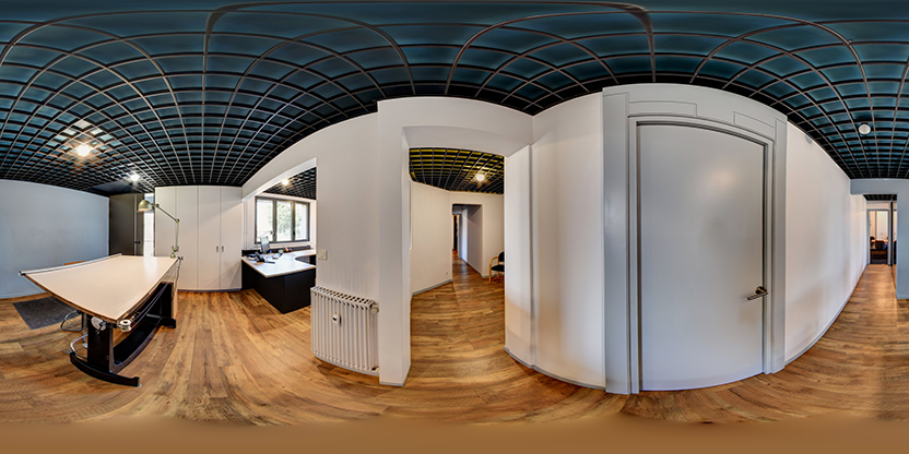 3. Navigation interactive : Les panoramas sont reliés entre eux pour permettre la navigation d'un espace à l'autre, comme si vous marchiez réellement dans les lieux.